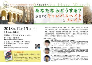 【12月15日イベント開催のお知らせ】「あなたならどうする?急増するキャンパスヘイトとフェイクーARICキャンパス反差別ガイドブック完成記念イベントー」