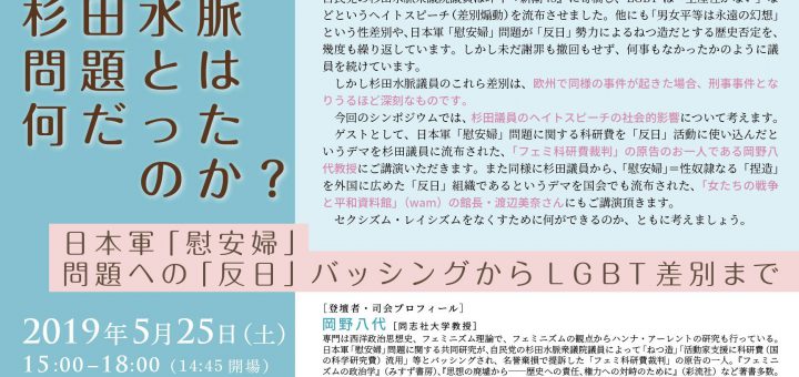 【新歓講演会 第2弾】杉田水脈問題とは何だったのか? ――日本軍「慰安婦」問題への「反日」バッシングからLGBT差別まで――