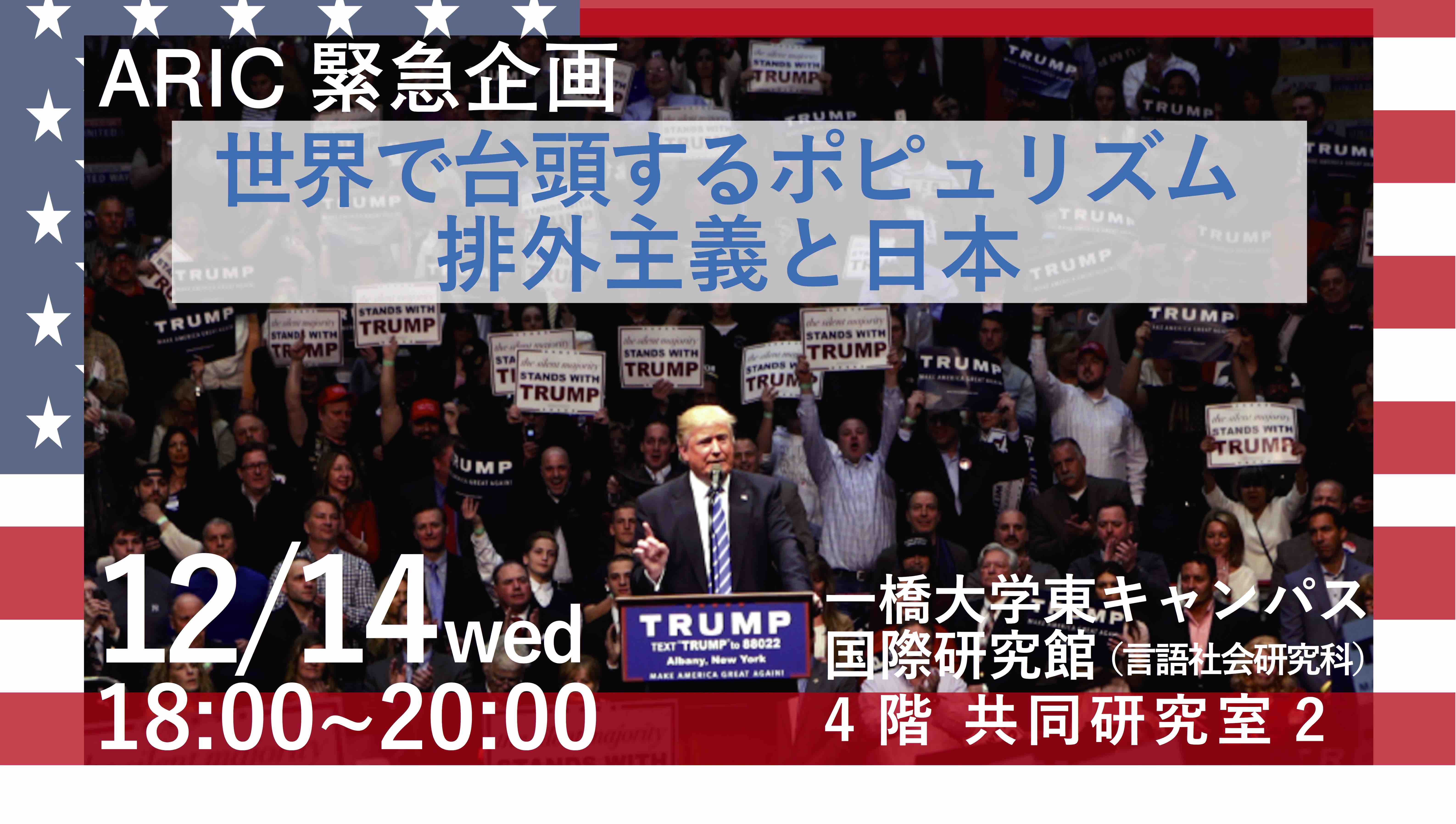 ARIC緊急企画「世界で台頭するポピュリズム/排外主義と日本」 日時: 12月14日(水) 18:00~20:00 場所...