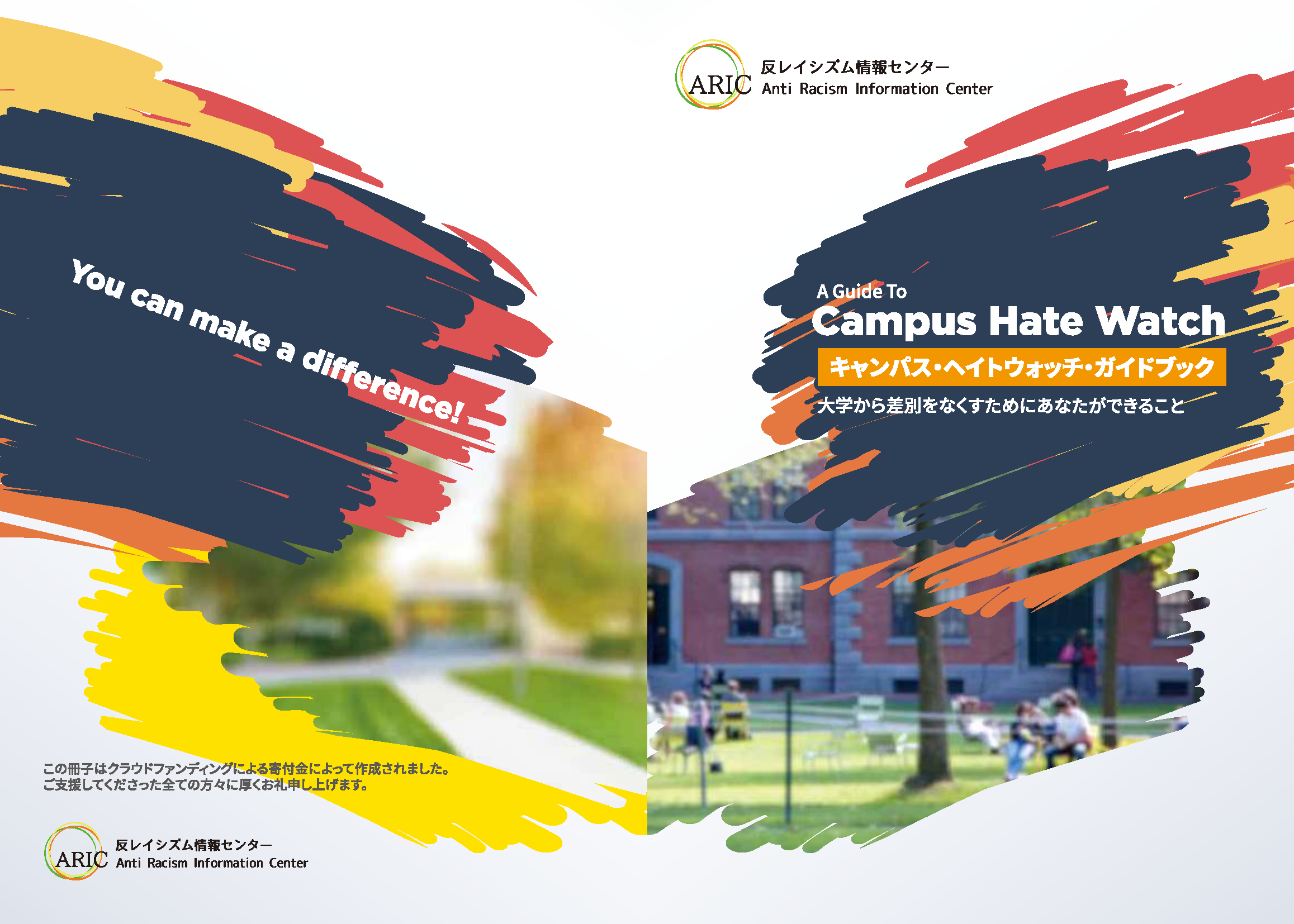 「キャンパス・ヘイトウォッチ・ガイドブック」は、みなさまからのクラウドファンディングへのご寄付により作成されました。ご理解とご支援をくださったみなさまに、今一度厚くお礼申し上げます。