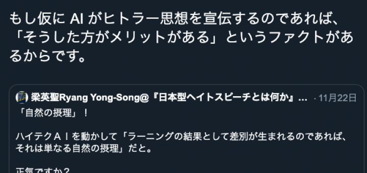 2019年11月29日 by antiracism-info · Published 2019年11月29日 · Last modified 2019年11月30日 2019年11月22日、大澤昇平 「まさに私が言いたかったのはこのことです。 これからAIが人権を持って行く時代